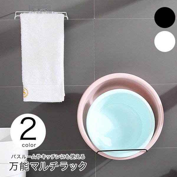 ラック マルチラック 万能マルチラック 多用途 キッチン バスルーム トイレ 収納ラック 収納 整理整頓 衛生的 タオル掛け ホワイト ブラック 粘着テープ 台所 お風呂場 キッチン用品 バス用品 使い勝手抜群 ブラック ホワイト