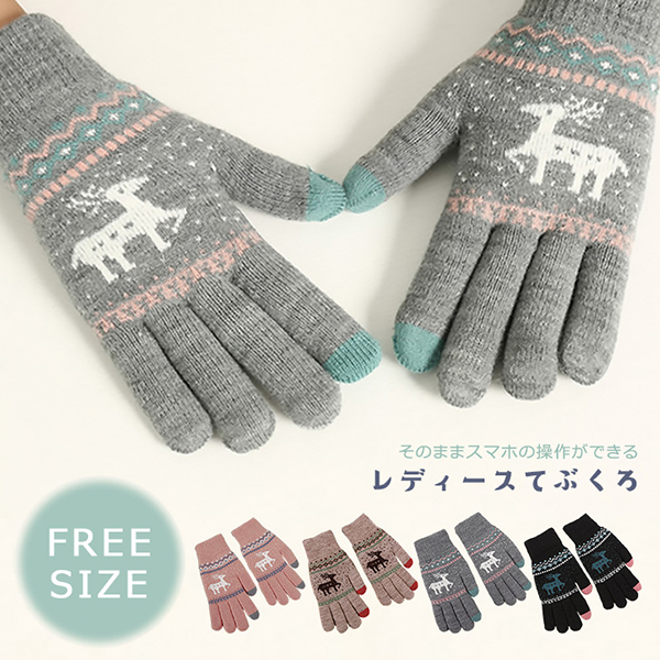 手袋 レディース かわいい 冬 秋 フリーサイズ スマホ操作可能 便利 トナカイ 防寒 寒さ対策 スマホ対応 手ぶくろ グローブ あったか 可愛い キュート 伸縮性 暖かい 手触り抜群 冷え対策 冷え防止
