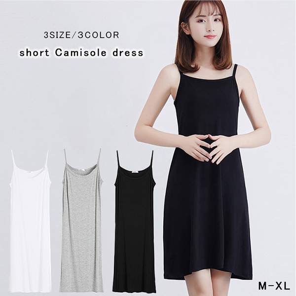 キャミショートワンピ ショートワンピース ショート キャミ レディース 短め モダール キャミワンピース レディース 無地 ひざ上又 キャミソール インナー 部屋着 ナイト ルームウェア ノースリーブ ストレッチ 黒 白 灰色