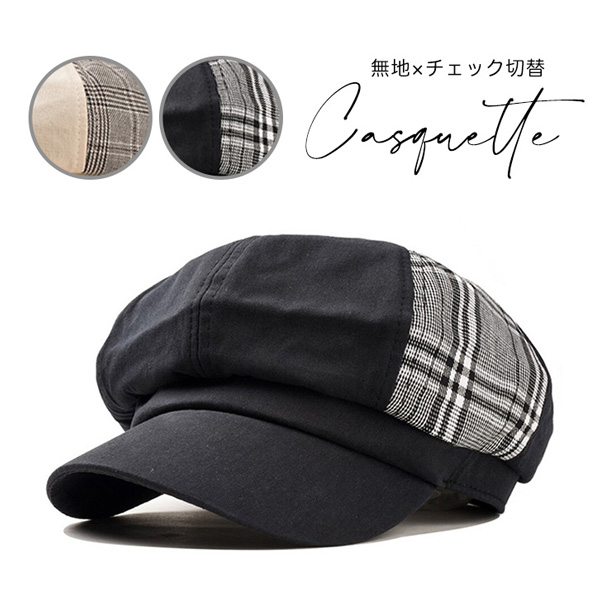 キャスケット 帽子 レディース ぼうし レディース帽子 バイカラー ツートンカラー おしゃれ チェック 無地 シンプル 秋 冬 トレンド ベーシック 切替キャスケット 小顔効果 サイズ調節可能 ベージュ ブラック 全2カラー 2タイプ かわいい キュート オシャレ