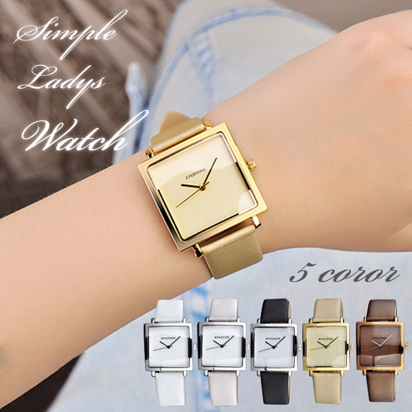 腕時計 レディース ウォッチ レディースウォッチ シンプル スクエア 四角 正方形 時計 上品 大人かわいい きれいめ かわいい 全5色 カラー豊富 カラーバリエーション ホワイト シルバー ブラック ゴールド ブラウン 合わせやすい
