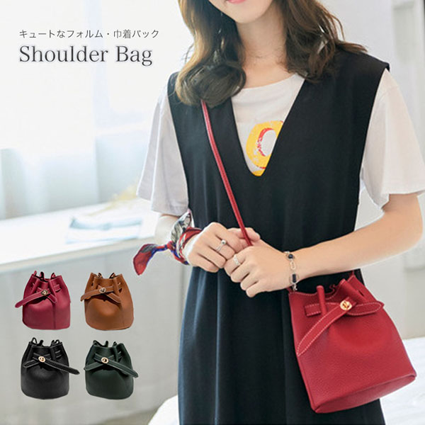 ショルダーバッグ 巾着型 巾着ショルダー 大人可愛い シンプル 巾着 肩掛けバッグ ショルダー ミニショルダー 小ぶり コンパクトサイズ ショルダー調節可能 ひねり金具 全4色 カラー豊富