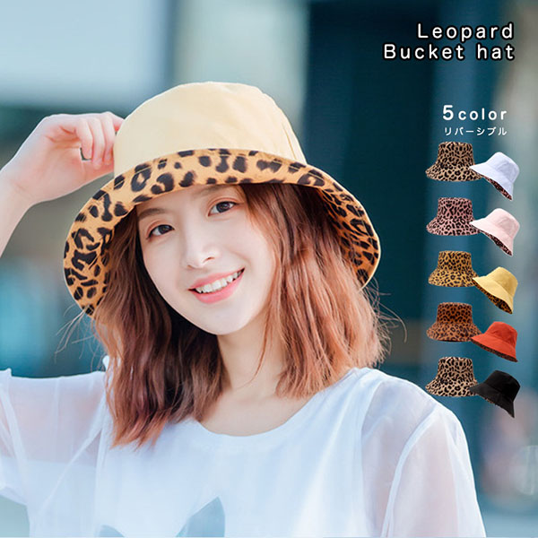 リバーシブル リバーシブルハット バケットハット レオパード 豹柄 豹 カジュアル リバーシブル 無地 トレンド ツバ広 バイカラー レディース 女性