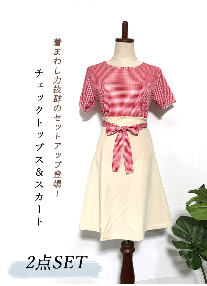 セットアップ レディースセットアップ トップス スカート チェックトップス チェック柄 膝上丈 セパレート 可愛い おしゃれ 大人かわいい 着回し力抜群 ウエストゴム 薄手素材 ルームウェア 清涼感 パフスリーブ セットインスリーブ