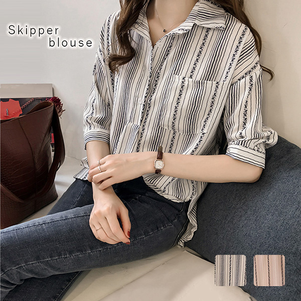 ブラウス レディースブラウス トップス 7分袖 7分袖ブラウス スキッパーデザイン 体型カバー ヒップカバー おしゃれ かわいい カジュアル 肌触り抜群 着心地抜群 さらさら ホワイト ピンク ワンサイズ 全2色 キュート 大人可愛い