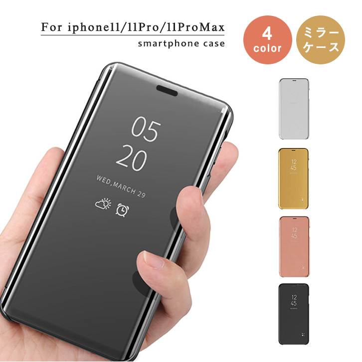 Phoneケース iPhoneカバー ケース カバー iPhone11 iPhone11Pro iPhone11ProMAX ミラーケース 手帳型 全4色 手帳型ケース 鏡 おしゃれ 鏡面 かわいい シンプル ゴールド ローズゴールド シルバー ブラック