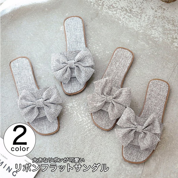 サンダル レディース フラットサンダル レディースサンダル リボンサンダル リボン 可愛い おしゃれ ビッグリボン キュート 歩きやすい 履きやすい 大人かわいい グレー ブラウン デイリー フラット シンプル リボンフラットサンダル