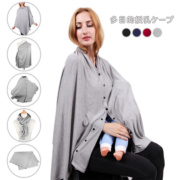 授乳ケープ ケープ 多機能 多目的 大判サイズ シンプル 授乳ポンチョ マタニティ 出産祝い 6way 抱っこ紐ケープ ポンチョ ブランケット ストール 看護カバー 全4色 グレー ワインレッド ブラック ネイビー