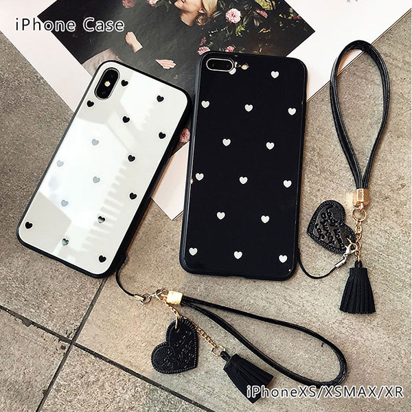 iPhoneケース アイフォン ストラップ付 iPhoneXS/iPhoneXR/iPhoneXSMAX対応 TPU素材 背面ガラス ブラック ホワイト