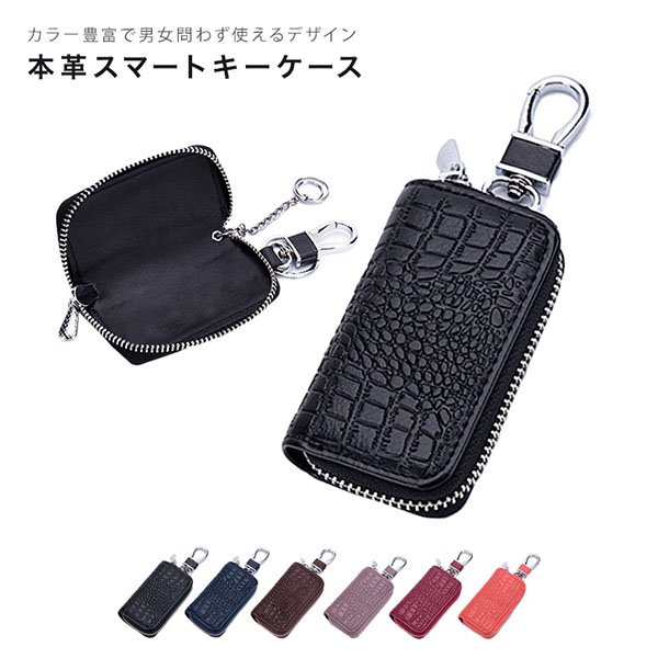 キーケース スマートキーケース 本革キーケース スマートキー収納可能 ジッパータイプ 本革 高級感 牛革 おしゃれ かっこいい プレゼント ギフト カラー豊富 カラーバリエーション 全6色
