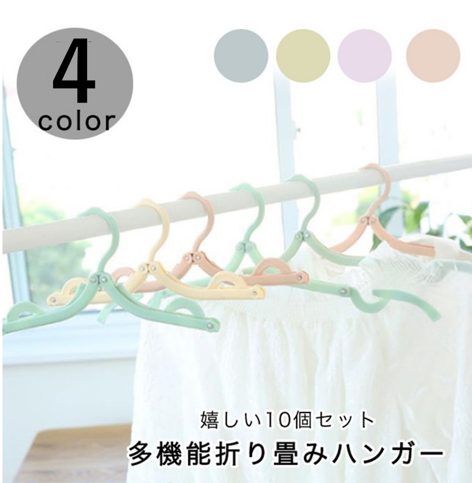 ハンガー 折りたたみハンガー 衣類ハンガー 多機能 折り畳み 10個セット 洗濯 収納 コンパクト 持ち運び便利 旅行 出張 衣類用ハンガー 機能性抜群 軽量 丈夫 カラー豊富 プラスチックハンガー 衣類