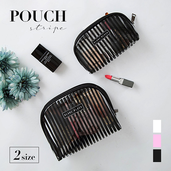 ポーチ メイクポーチ マルチポーチ 小物入れ クリアポーチ ボーダーポーチ 大小セット 2サイズ 大 小 Sサイズ Lサイズ コスメ 小物 お手入れ楽々 持ち運び便利 ファスナー開閉 コンパクト ブラック ホワイト ピンク かわいい