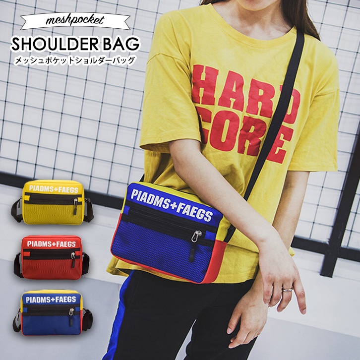 ショルダーバッグ バッグ ショルダー 肩掛けバッグ 斜め掛けバッグ 肩掛け 斜め掛け ビビットカラー おしゃれ 映え スポーティー ユニセックス レディース メンズ コンパクト デイリー トレンド メッシュポケット オシャレ