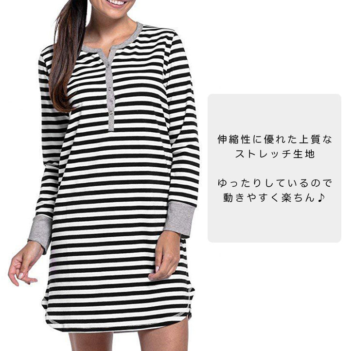 マタニティーワンピース マタニティ ワンピース シャツワンピ マキシワンピ 大きいサイズ ストライプ ボーダー ラッパ袖 ゆったり