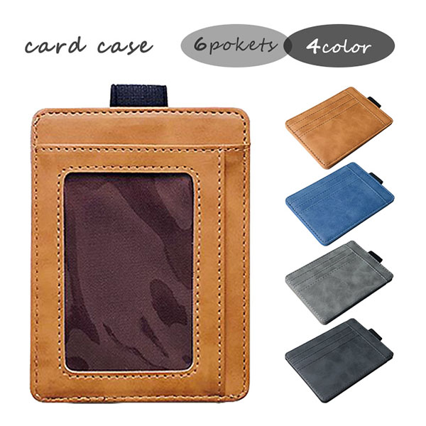 カードケース ICケース 定期入れ 6ポケット 全4色 6枚収納可能 シンプル スリム 両面収納 ブラウン ブルー ライトグレー ダークグレー 持ち運び便利 カジュアル ビジネス 定期券入れ デイリー使い 無地 男女兼用 メンズ レディース
