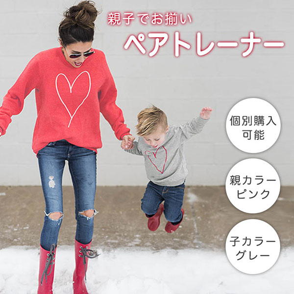 【単体の価格です】トレーナー ハート柄 長袖 クルーネック トレーナー スウェット トップス ハート 親子ペア お揃い 親子 ペアルック リンクコーデ 春 秋