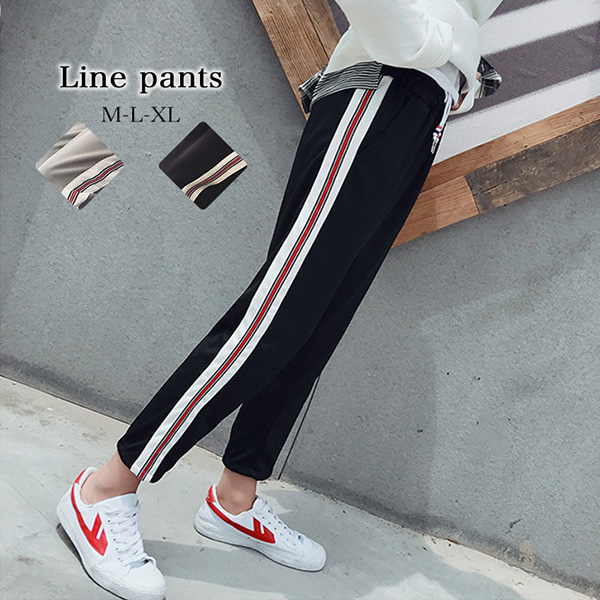 メンズ ラインパンツ ラフ オールシーズン ウエストゴム サイドポケット ユニセックス 男女兼用 シンプル 脚長効果 美脚 履き心地抜群 抜け感 アウトドア