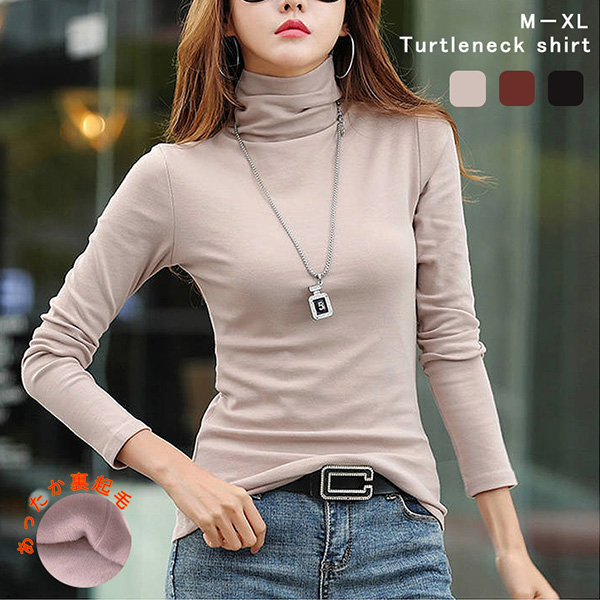 トップス タートルネック 長袖 レディース タートルネックシャツ 裏起毛 あったか 秋 冬 寒さ対策 無地 シンプル インナー 美シルエット 着回し抜群 首元あったか 柔らかい 肌触り抜群 伸縮性あり ピンク ブラウン ブラック 全3色