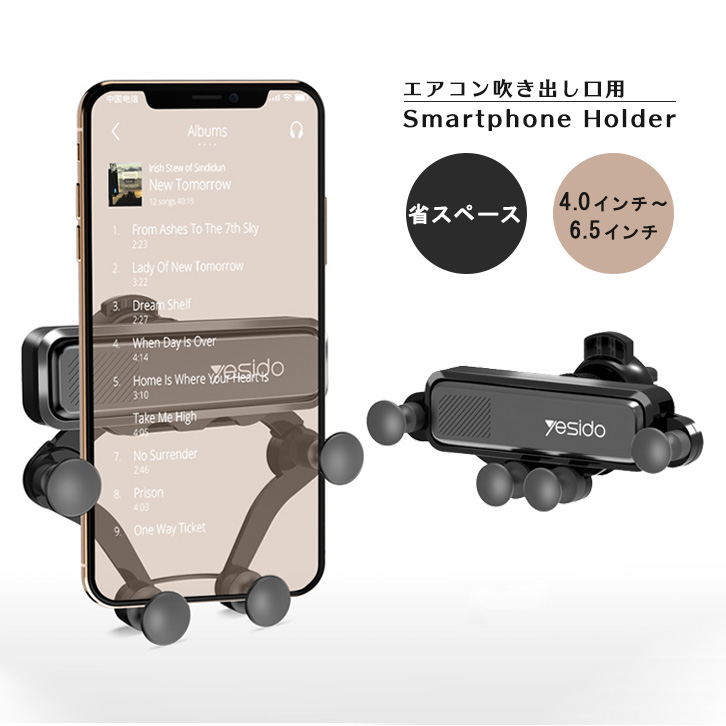 スマホホルダー 車載ホルダー 車載スマホホルダー スマホ スマートフォン iPhone Android Galaxy スマホスタンド 車 車用 車載 多機種対応 カーホルダー エアコン用 設置簡単 省スペース 車載用 エアバッグ内蔵