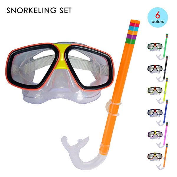 シュノーケリング シュノーケルセット 海 プール ウォーターレジャー シュノーケリングセット 夏 カラー豊富 ゴーグル 全6色 グリーン ブラック イエロー ブルー オレンジ ピンク アウトドア