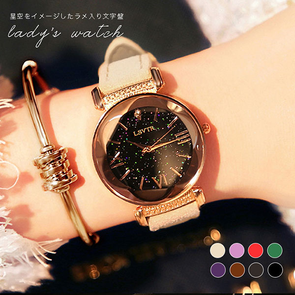 腕時計 ウォッチ 星空 ラメ入り文字盤 キラキラ きれい おしゃれ かわいい ベルトカラー豊富 高級感溢れる ジュエリー 7段階調節可能ベルト カラーバリエーション豊富 全8カラー 大人可愛い