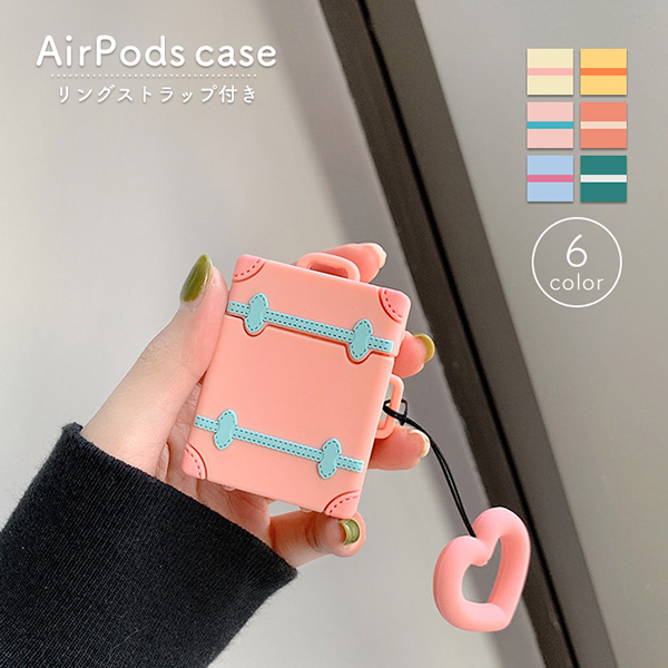 Airpodsケース Airpods Airpods専用ケース トランクデザイン トランク ケース カバー カラー豊富 カラーバリエーション リングストラップ付き 落下防止 TPU素材 着脱簡単 可愛い 機能性抜群 操作性抜群 キュート おしゃれ