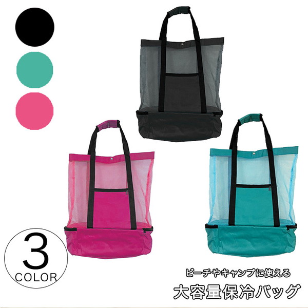 バッグ トートバッグ メッシュバッグ サマーバッグ メッシュトートバッグ レジャー アウトドア 海 プール 大容量 保冷バッグ 保冷 キャンプ 収納力抜群 通気性抜群 ピンク ブラック グリーン ジップ 保冷素材 ナイロン素材