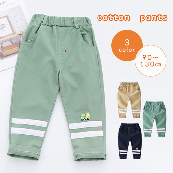 子供用ズボン 男の子 ボーイズ 男児 キッズ 合わせやすい ウエストゴム ポケット付き 折り曲げて長さを調節可能 ワンポイント刺しゅう入り トラック刺繍 カーキ グリーン ネイビー