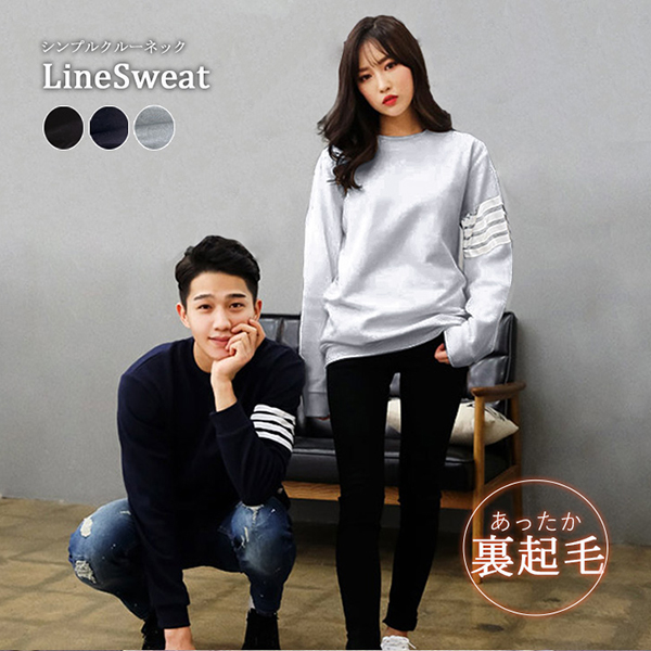 スウェット ラインスウェット 裏起毛 シンプル 定番 男女兼用 ユニセックス メンズ レディース あたたかい お揃い おしゃれ ライントレーナー トレーナー リブ加工 着回し抜群 グレー ネイビー ブラック