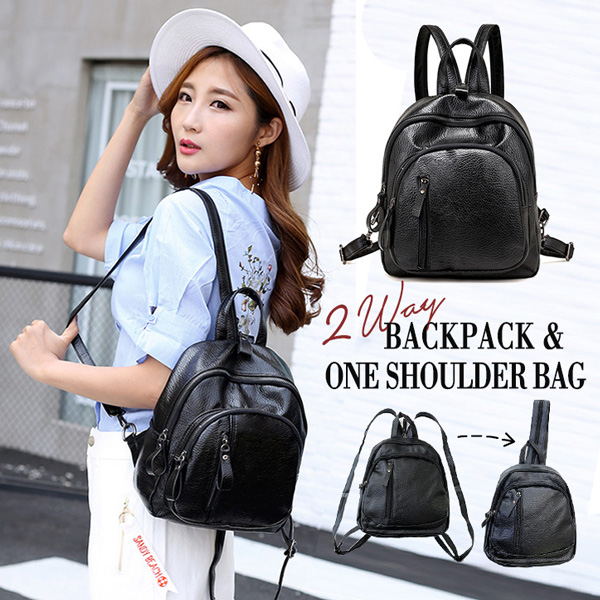 バックパック リュック ワンショルダーバッグ 2wayバッグ 肩紐調節可能 ブラック シンプル 収納力抜群 背面ファスナーポケット 合わせやすい かわいい デイリー 収納ポケット多数 PUレザー 黒 2wayリュック