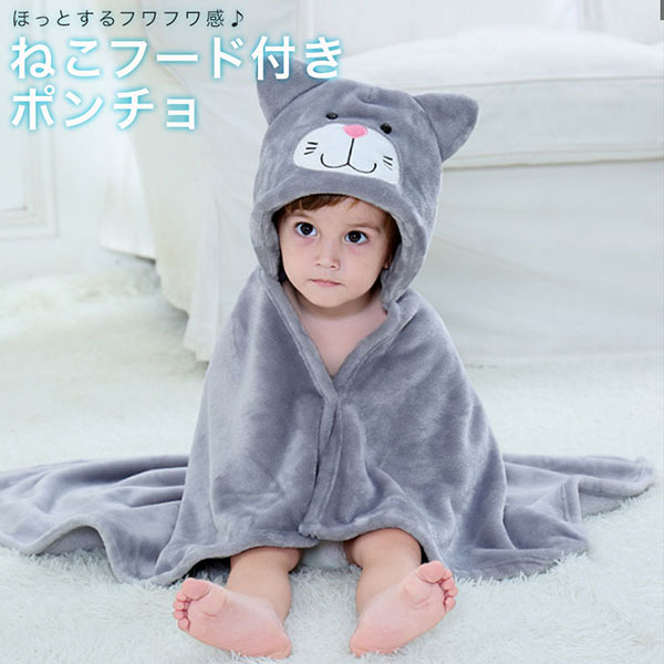 ポンチョ 着る毛布 男女兼用 フード付き ルームウェア 供 キッズ あったか ガウン 防寒 秋 冬 ふわふわ ふわもこ 猫 可愛い かわいい グレー 秋冬 暖かい 静電気 抗菌 防臭 男の子 女の子