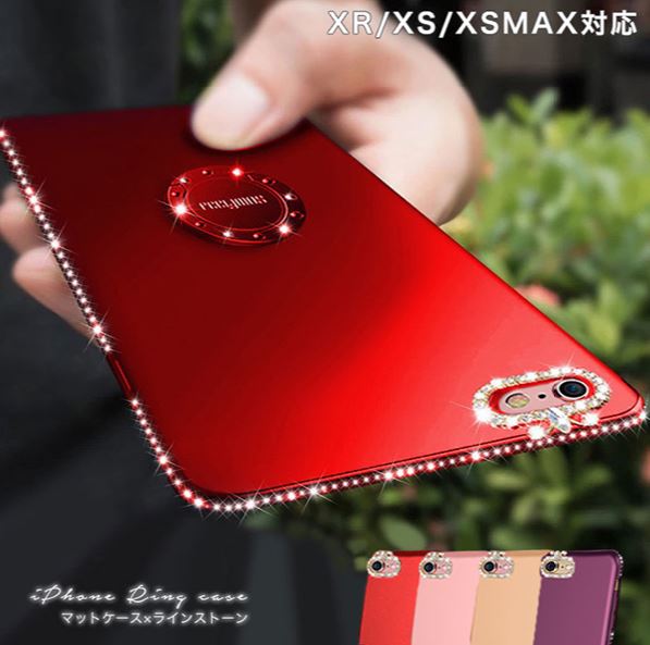 iPhoneケース iPhone リング付きケース アイフォン かわいい かっこいい おしゃれ iPhoneカバー カバー 落下防止 iPhoneXS XR XSMAX サイドストーン付き キラキラ カラー豊富 パープル レッド ゴールド ローズゴールド