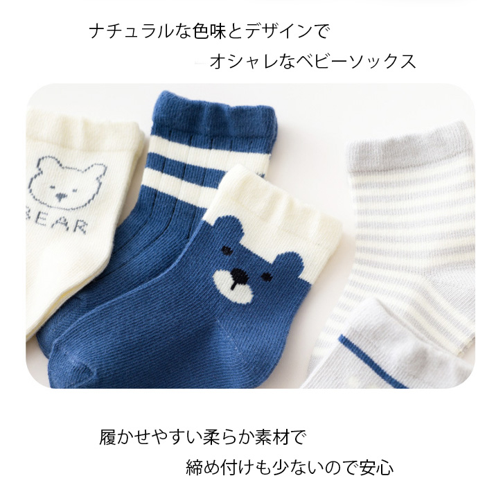靴下 ベビーソックス ベビー靴下 ベビー 赤ちゃん 5足セット コットン素材 ベビー用ソックス かわいい 出産祝い ギフト 保育園 入園準備 内祝い 入園グッズ 可愛い 男の子 女の子 アニマル ボーダー 足跡 ピンク ブルー