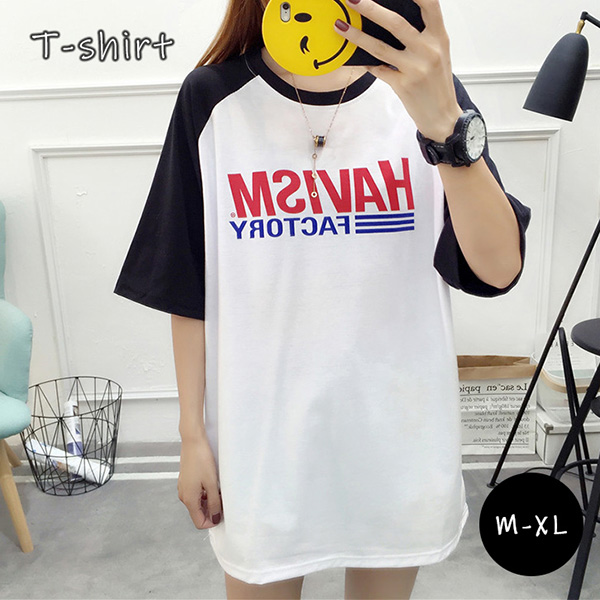 Tシャツ シンプル ビッグTシャツ ゆるっと 体型カバー カジュアル ロゴ入り ゆったりUネック 抜け感 着心地抜群 半袖 ハーフ丈 5分丈 5分袖 二の腕カバー 細見え効果 カジュアルコーデ 合わせやすい ホワイト