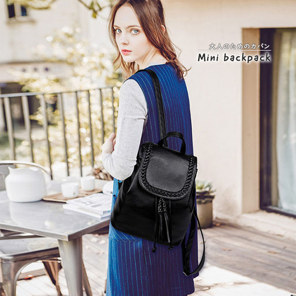 バックパック リュック ミニバックパック レディース リュックサック ミニ シンプル ブラック タッセル 大人カジュアル 上品 大人かわいい 収納力抜群 巾着タイプ マグネットボタン式 背面ファスナーポケット付き ショルダー調節可能