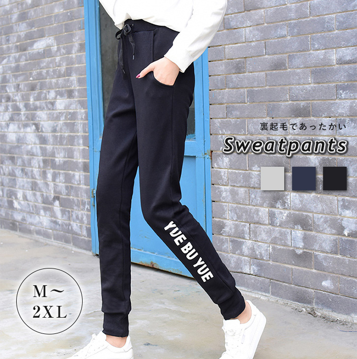 ボトム ジャージ スウェットパンツ レディース 裏起毛 あったかい パンツ スポーティー カジュアル ストリート スリムフィット あったか 秋冬 着心地抜群 脚長効果 ストレッチ素材 ウエストゴム ラクチン 全3色 ルームウェア