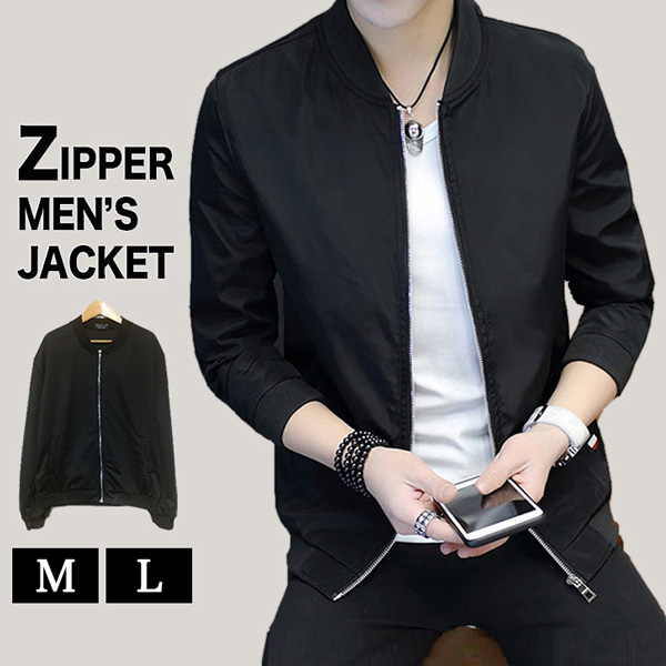 ジャケット ブルゾン メンズ メンズジャケット メンズブルゾン シンプル ブラック 美シルエット ジップアップ スタイリッシュ カジュアル 合わせやすい 着回し抜群 ロングシーズン 羽織り 秋 春 リブ フロントポケット きれいめ