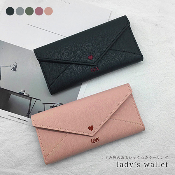 長財布 レディース財布 レター型長財布 ロングウォレット 財布 レディース かわいい ラブレター型 レターデザイン おしゃれ ラブレター風 カラー豊富 ブラック モスグリーン ベビーピンク ディープピンク グレー