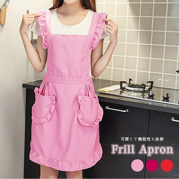 エプロン フリルエプロン フリル レディース 綿 ふりふり ゆめかわ ロリィタ ファッション ウェイトレス 喫茶店 メイド メイド喫茶 ウェイター ゴスロリ 家事 料理 可愛い 丈81cm