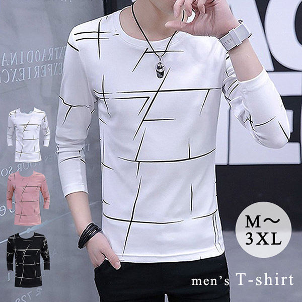 メンズロンT ロンT ロングTシャツ 長袖 メンズTシャツ メンズシャツ シンプル 全3色 ホワイト ピンク ブラック オシャレ 合わせやすい カジュアル キレイめ 春 秋 かっこいい