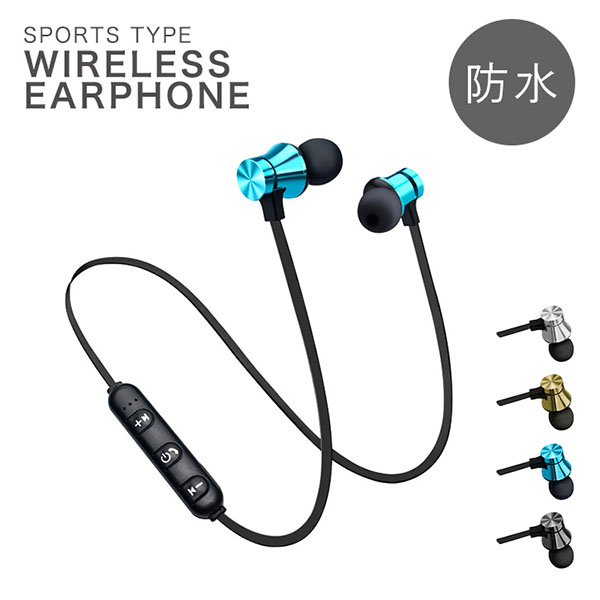 イヤホン ワイヤレスイヤホン イヤフォン ワイヤレス Bluetoothイヤホン Bluetooth4.2対応 防水 装着感快適 高音質 防水仕様 ウォータープルーフ 生活防水 マグネット吸着 全4色 4カラー シルバー ゴールド ブルー ブラックシルバー 軽量 通勤 通学 スポーツ 散歩 通話 音楽