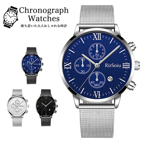メンズウォッチ 腕時計 メンズ腕時計 時計 メンズ用ウォッチ メンズ 男性 おしゃれ 高級感 デイリー ビジネス シック 軽量 薄型 メッシュベルト メタルバンド クロノグラフデザイン モダン ブラック シルバー グレー ブルー