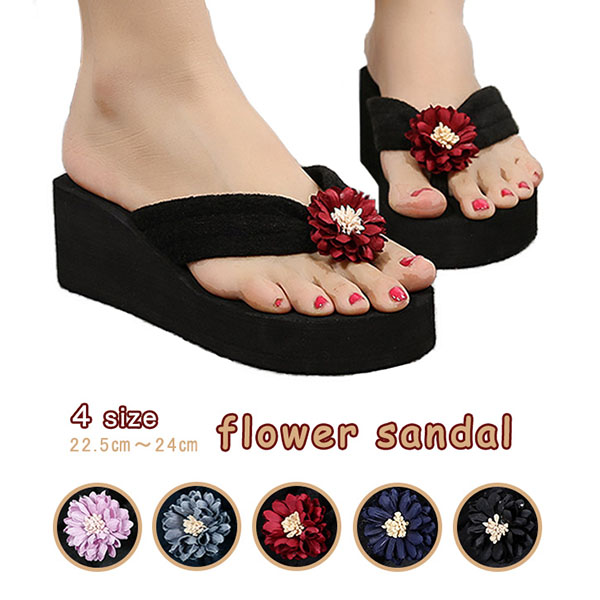花サンダル ボヘミア お花 心地よい 痛くない 滑らない ウェッジヒール 砂浜のスリッパ 女性 ビーチサンダル レディス 可愛いサンダル美脚 夏用 海外セレブ