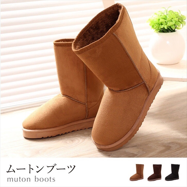 レディース フェイクムートン ムートンブーツ 茶 ベージュ be スノーブーツ 冬 モコモコブーツ 女性 【ベージュ】