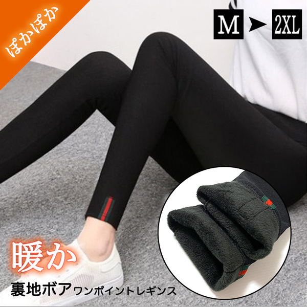 レギンス レギンスパンツ レディース ワンポイントレギンス 裏地ボア あったか 暖かい 全面裏地ボア ふかふか ふわふわ ストレッチ素材 動きやすい 美脚シルエット ウエストゴム サイズ豊富 ブラック 防寒 冬