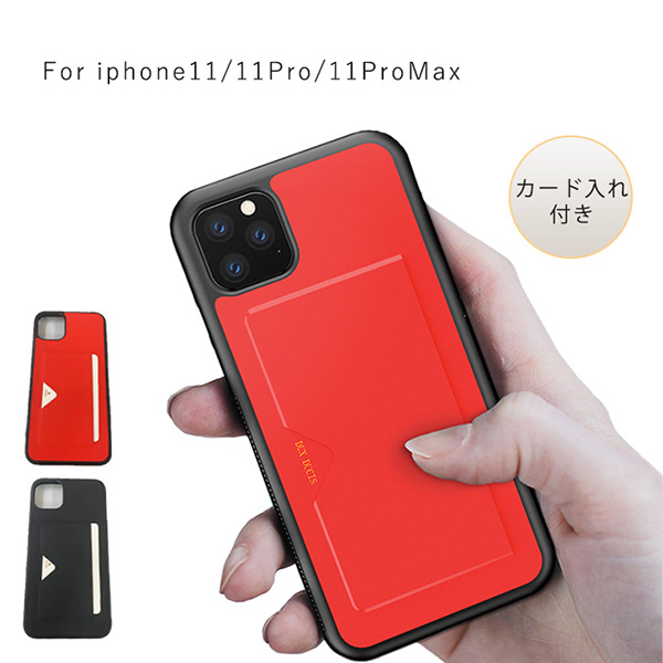 iPhoneケース iPhoneカバー アイフォン ケース カバー iPhone11 iPhonePro iPhone11ProMAX マット素材 指紋が付きにくい 触り心地抜群 カードポケット付き 背面カードポケット付き 滑り止め ワイヤレス充電対応 レッド ブラック
