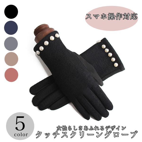 手袋 レディース手袋 手ぶくろ グローブ パール スマホ操作対応 上品 エレガンス シンプル おしゃれ きれい 大人かわいい ネイビー グレー ピンク ブラック ブラウン シンプル あったか 防寒対策 防寒 冬 寒さ対策