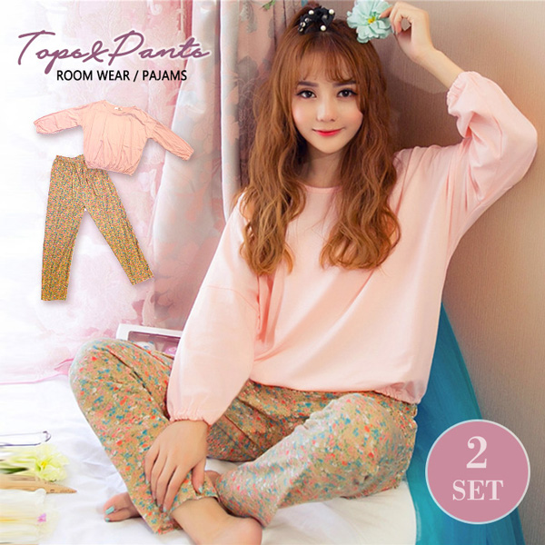 【上下セット】 ルームウェア レディース 上下セットかわいい 花柄 ルームウェア 部屋着 パジャマ 長袖 春 夏 秋 綿混 薄手
