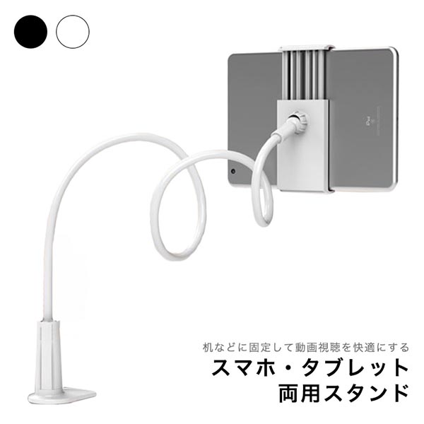 タブレットスタンド スマホスタンド ぐねぐねスタンド 曲がる グネグネ 強力ホールド 動画視聴 がっちり 2色展開 ブラック ホワイト シンプル 卓上アームスタンド 卓上