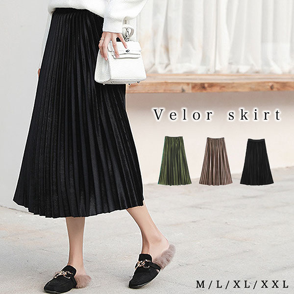 スカート レディーススカート ミモレ丈 プリーツスカート ベロア素材 ベロアプリーツ ベロアプリーツスカート 大人かわいい おしゃれ シンプル 美フォルム キュート 可愛い 縦長効果 プリーツ ウエストゴム 裏地付き 暖かい 透け感なし